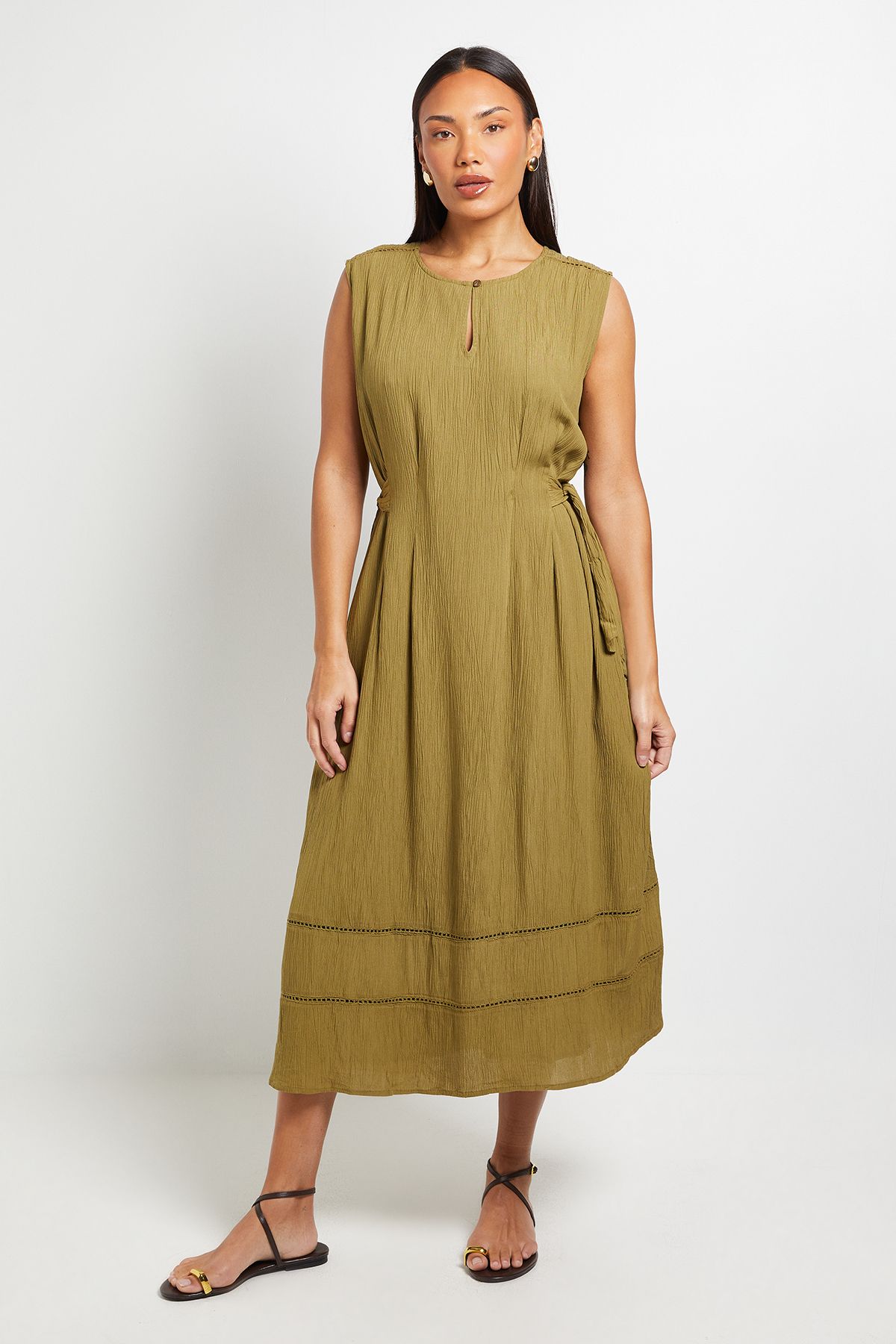 Principles Khaki Ladder Trim Tie Detail Midi Dress Khaki