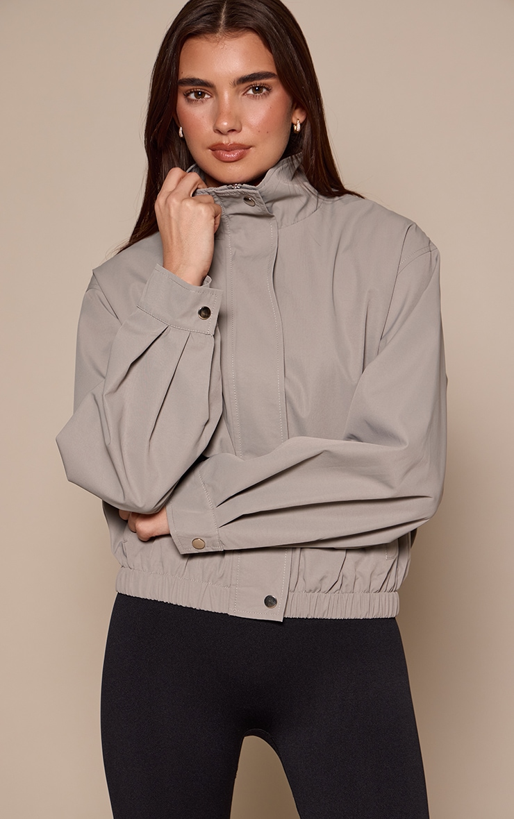 Light Grey Funnel Neck Ruched Windbreaker